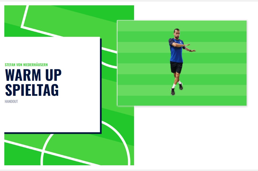 Aufwärmen dient zur Verringerung des Verletzungsrisikos, Steigerung der Motivation und Aktivierung vom gesamten Bewegungsapparat. Nutze das Programm zum Aufwärmen am Spieltag, 8 Pages 23...