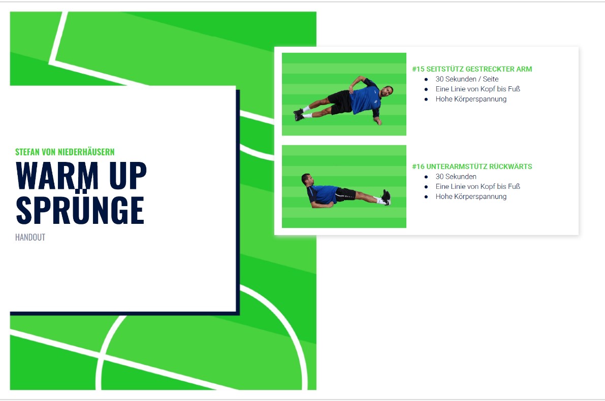 Aufwärmen dient zur Verringerung des Verletzungsrisikos, Steigerung der Motivation und Aktivierung vom gesamten Bewegungsapparat. Nutze das Programm zum Thema Sprünge.